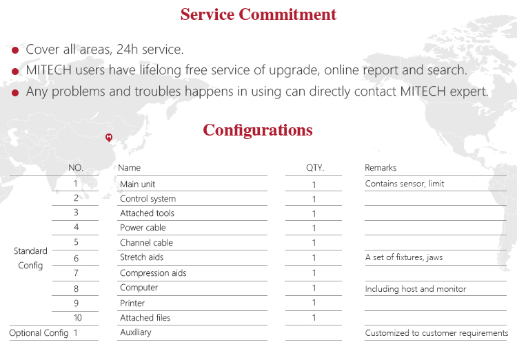 Mitech MDW micro control series gate type electronic universal testing machine, through the computer control motor drive screw, equipped with the corresponding auxiliary for metal, non-metallic and composite materials for pull, pressure, bending and other mechanical properties test (Tensile test carried out between the upper beam of the main body and the moving beam. Compression and bending tests carried out between the table of the host and the moving beam). It’s adopts the built-in controller, AC servo motor, by computer-aided means to achieve powerful function with stable performance, strong structure, high reliability, simple operation, high degree of automation. It’s widely used in metal and non-metallic processing industry, quality inspection departments, scientific research and other areas of higher education institutions and it’s a necessary professional precision testing equipment for improve production efficiency and save production costs.