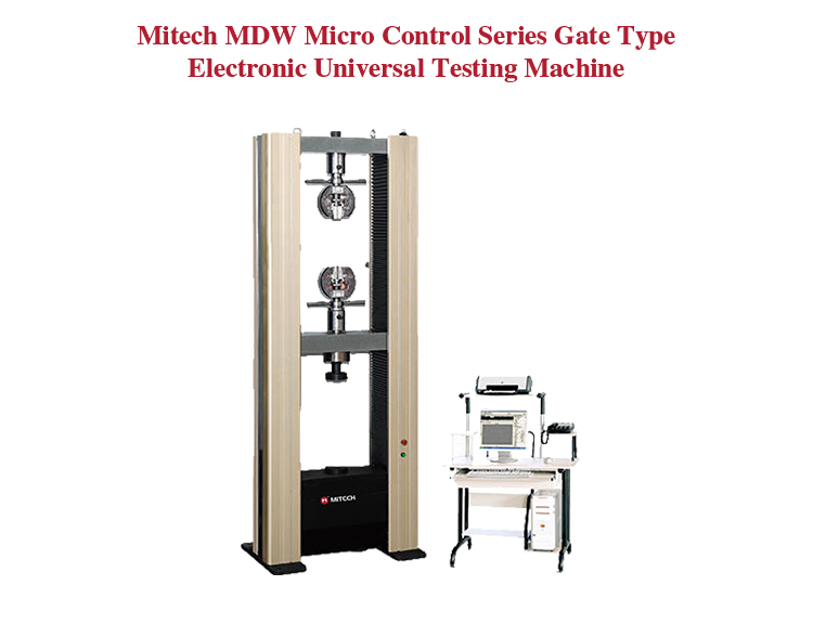 Mitech MDW micro control series gate type electronic universal testing machine, through the computer control motor drive screw, equipped with the corresponding auxiliary for metal, non-metallic and composite materials for pull, pressure, bending and other mechanical properties test (Tensile test carried out between the upper beam of the main body and the moving beam. Compression and bending tests carried out between the table of the host and the moving beam). It’s adopts the built-in controller, AC servo motor, by computer-aided means to achieve powerful function with stable performance, strong structure, high reliability, simple operation, high degree of automation. It’s widely used in metal and non-metallic processing industry, quality inspection departments, scientific research and other areas of higher education institutions and it’s a necessary professional precision testing equipment for improve production efficiency and save production costs.