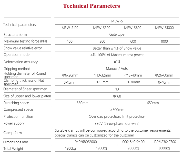 Mitech MEW-S digital display series hydraulic universal testing machine, by controlling the high-pressure pump to drive the screw movement, equipped with the corresponding auxiliary for metal, non-metallic and composite materials for stretching, compression, bending, cutting, stripping, tear.With using digital processing, high-precision data acquisition and control technology, graphical interface, integrated design, it owns stable performance, strong structure, high reliability, simple operation. Widely used in metal and non-metallic processing industry, quality inspection departments quality testing, scientific research and other areas of higher education institutions.It is the necessary professional precision testing equipment for improving production efficiency and saving production costs