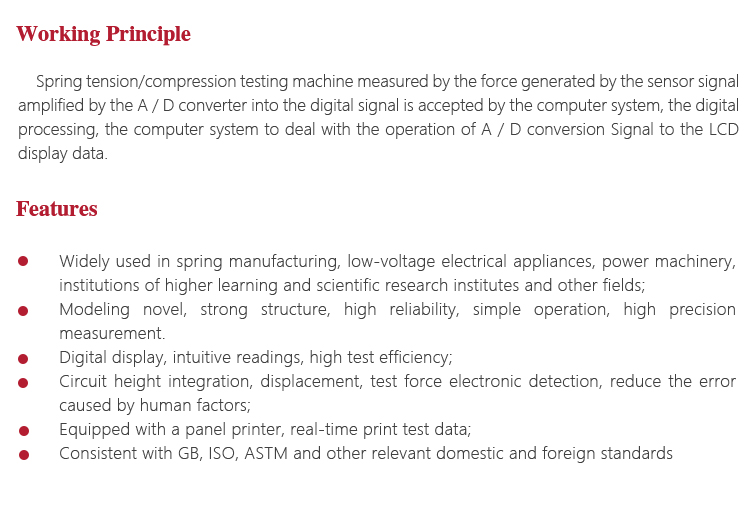 Widely used in spring mechanical performance test.