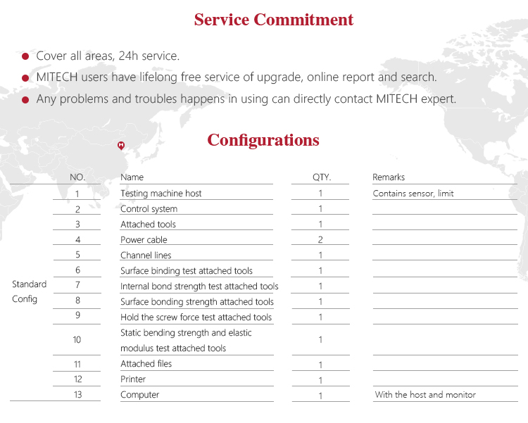 Mitech MDW-M series of micro control wood-based universal testing machine, through the single-chip automatic control motor driving screw movement, can do various of physical and chemical properties of the test for wood-based panels and decorative panels. With built-in controller, AC servo motor, automatic control and data acquisition system, stable performance, strong structure, high reliability, simple operation, high degree of automation, it widely used in the wood-based panels and decorative panels of the internal bond strength, surface bonding strength, tensile strength test, bending test, elastic modulus test, grip force test and plywood shear cut test. It is a necessary professional precision testing equipment for improve production efficiency and save production costs.