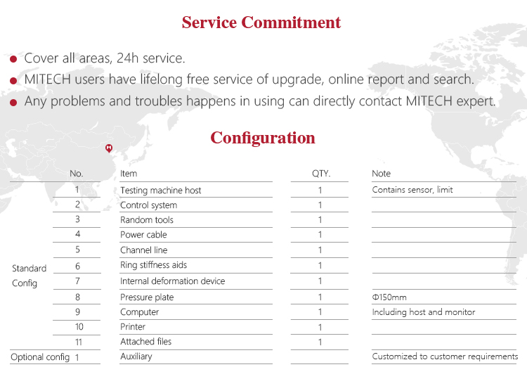 Widely used in metal, non-metallic and composite pipe flat compression, ring stiffness, ring flexibility, tensile, creep ratio test.