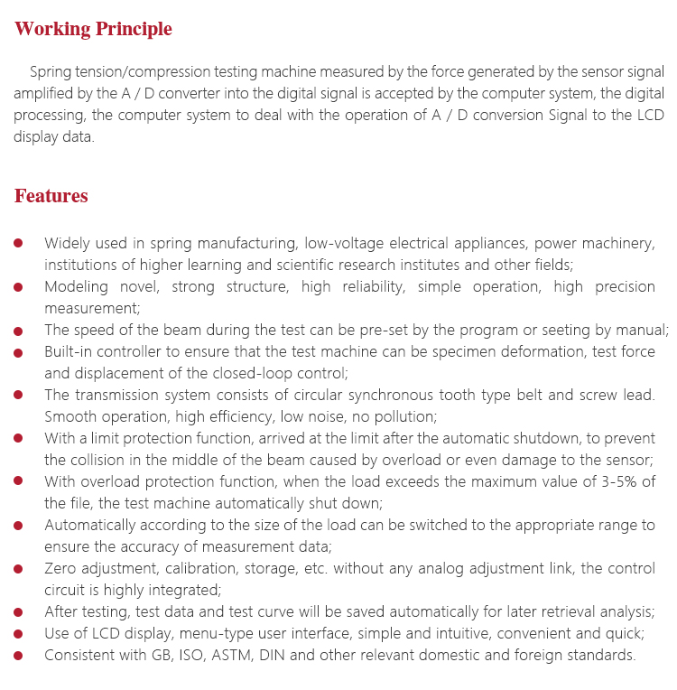 Spring tension/compression testing machine measured by the force generated by the sensor signal amplified by the A / D converter into the digital signal is accepted by the computer system, the digital processing, the computer system to deal with the operation of A / D conversion Signal to the LCD display data.