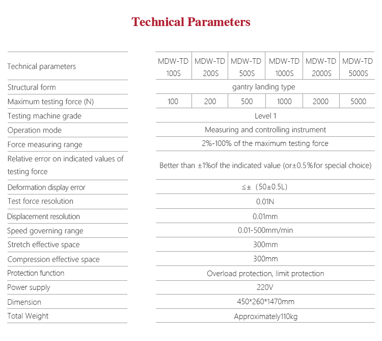 Mitech MDW-TDS digital series of Single - Arm Spring Tension/Compression Testing Machine, through the single-chip automatic control motor driving screw movement, for a variety of coil springs for tensile and compression test. it use of built-in controller, AC servo motor, automatic control and data acquisition system, stable performance, strong structure, high reliability, simple operation, high degree of automation. Widely used in spring manufacturing, low-voltage electrical appliances, power machinery, institutions of higher learning and scientific research institutes and other fields.It is the necessary professional precision testing equipment for improving production efficiency and saving production costs.