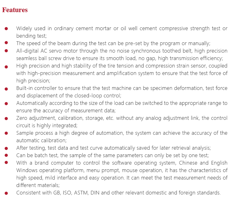 l Widely used in ordinary cement mortar or oil well cement compressive strength test or bending test;