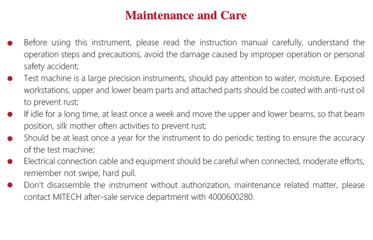l Don’t disassemble the instrument without authorization, maintenance related matter, please contact MITECH after-sale