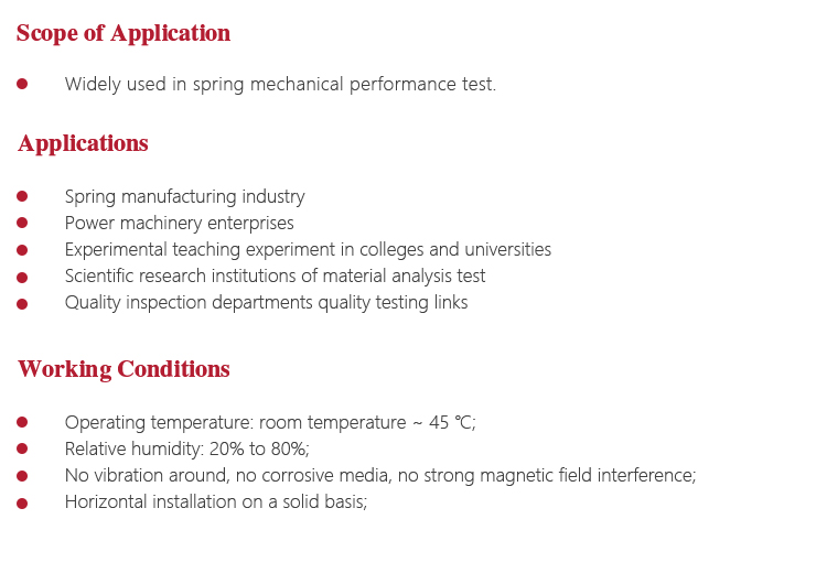 Spring tension and compression testing machine, the sensor force generated by the signal sent to the measurement amplifier, amplified into the A / D converter into a digital signal is accepted by the computer system,by the computer system to accept the digital processing, the computer system to deal with the operation of A / D converter to the signal through the LCD display data.