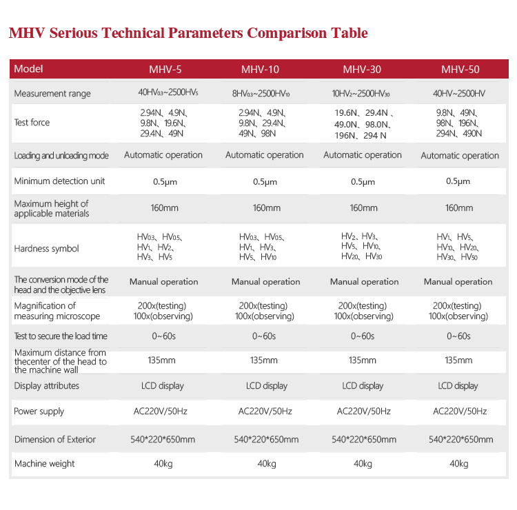 Hardness symbol | HV0.3、HV0.5、HV1、HV3、 HV5、HV10 |