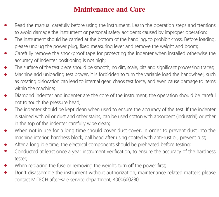 Conducted at least once a year instrument verification, to ensure the accuracy of the hardness tester