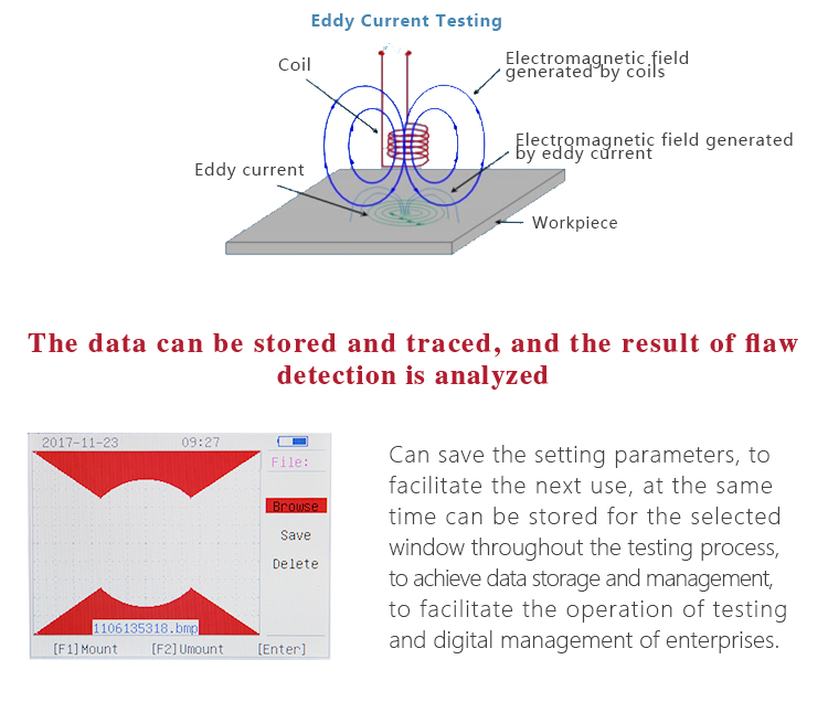 The eddy current detection technique is based on the principle of electromagnetic induction, and the excitation signal is loaded into the probe coil. When the probe is close to the metal surface, the alternating magnetic field around the coil will generate the induced current on the metal surface.For flat metal, the flow of induced current is a coil concentric circular, shaped like a vortex, named as the eddy current.The size, phase and flow pattern of the eddy current are affected by the conductivity of the specimen.The eddy current also produces a magnetic field that in turn causes the impedance of the detection coil to change.So when the conductor surface or near the surface of the defect or the measurement of metal materials change, the intensity and distribution of eddy currents will be affected by changes in the impact,Which in turn causes a change in the detection coil voltage and impedance.Eddy current testing is based on this change, the indirect feedback of the existence of defects within the conductor and the performance of metal materials have changed.