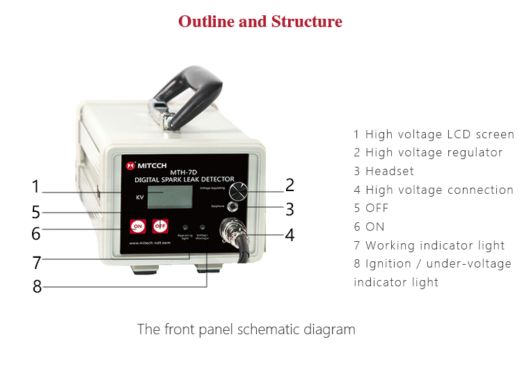 MTH-7D digital DC spark leak detectorbased on the principle of high pressure pulse conducting through anti-corrosion layer,can quickly detect the crack leakage of the coating. While using, if there is pinholebubble and crackle in the layer ,the instrument will make a bright spark and accompanied by a warning tone.The operation is extremely simple,and It’s powered by the unique design relies on the large capacity battery packs that no longer rely on 220V power supply.It is suitable for engineering site operations. The performance of the product is stable and reliable, thus widely used in Oil and Gas pipelinesCable、Enamel、Metal Casting Pipe、Hull and other metal surface corrosion insulation construction quality and aging corrosion monitoring,it is also the necessary testing equipment in chemical, oil, rubber industry.