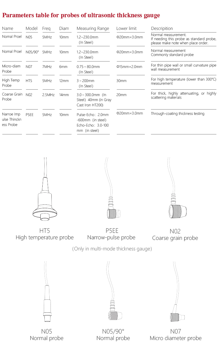 Probe Diameter | Standard Probe P5EE is 10mm, Probe N05 is10MM、Probe N07 is 6MM、Probe HT5 is12MM、Probe N02 is12MM |