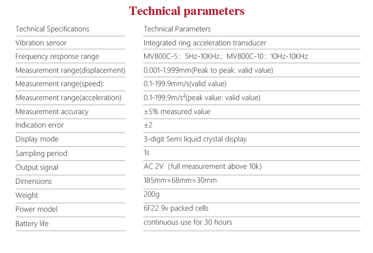 Measurement range(speed) | 0.1~199.9mm/s (valid value) |
