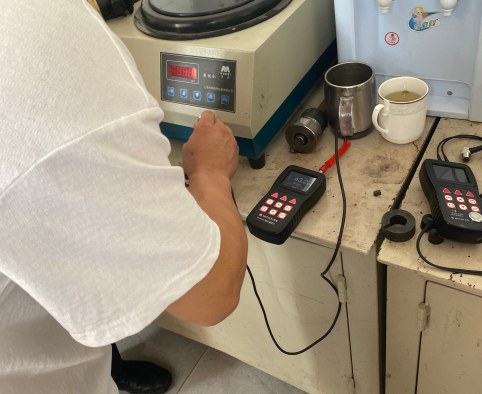現(xiàn)場(chǎng)了解到需要檢測(cè)硬度的工件為熱處理后柱形工件。美泰工程師選用MH600硬度計(jì)進(jìn)行檢測(cè),現(xiàn)場(chǎng)測(cè)值精準(zhǔn)重復(fù)性良好。