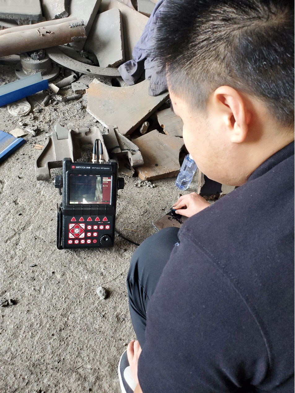 該單位是當(dāng)?shù)匾?guī)模最大的耐磨材料國(guó)企公司,對(duì)產(chǎn)品質(zhì)量有嚴(yán)格的標(biāo)準(zhǔn)。本次上門交貨演示的超聲波探傷儀,是用于該廠新項(xiàng)目引進(jìn)的一批原鑄件材料進(jìn)行 無(wú)損探傷,該原料日后用于耐磨機(jī)襯板的制作,不能存在缺陷隱患,以保護(hù)球磨機(jī)筒體,避免礦料、物料直接沖擊摩擦。如襯板里面有較大氣孔夾雜等缺陷,會(huì)造成襯板斷裂等事故,另外還需檢測(cè)一些20mm左右的較薄板材。