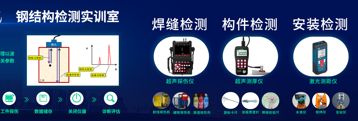 美泰為該校實(shí)驗(yàn)室規(guī)劃了整套方案,提供了超聲波探傷儀、超聲波車測厚儀、涂層測厚儀及相關(guān)配件實(shí)訓(xùn)設(shè)備,并提供全套培訓(xùn)資料。
