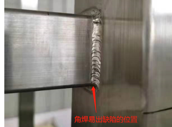 現(xiàn)場(chǎng)了解到,待測(cè)工件為4-8mm的管道焊縫,焊接工藝采用的是不銹鋼焊絲焊的氣體保護(hù)焊,主要是對(duì)接焊和角焊,現(xiàn)場(chǎng)目視焊縫焊接基本美觀平整。根據(jù)實(shí)際情況,美泰工程師選用2.5p 9*9 k3的單晶斜探頭進(jìn)行檢測(cè),對(duì)接焊處焊接點(diǎn)可以觀察到明顯的缺陷波。對(duì)接焊接管道處進(jìn)行全面掃查探傷后,焊接點(diǎn)缺陷明顯,角焊處角落有小氣泡的存在。