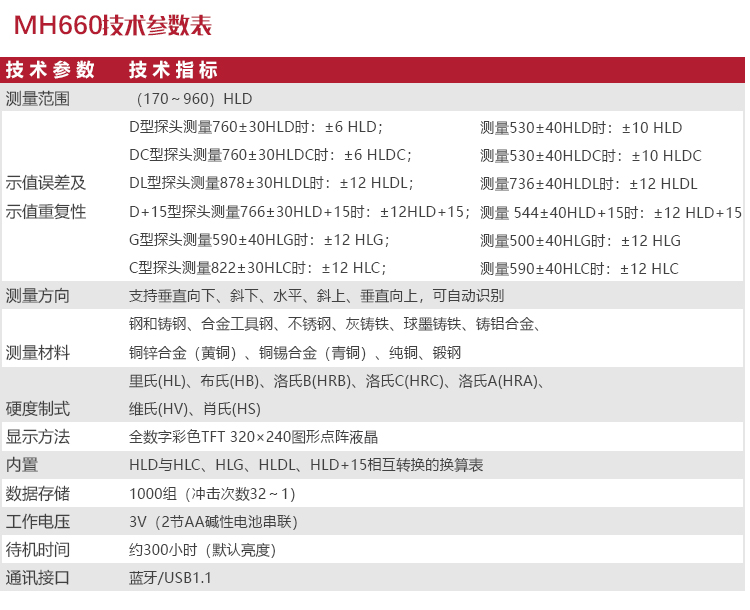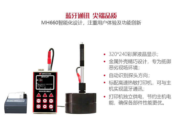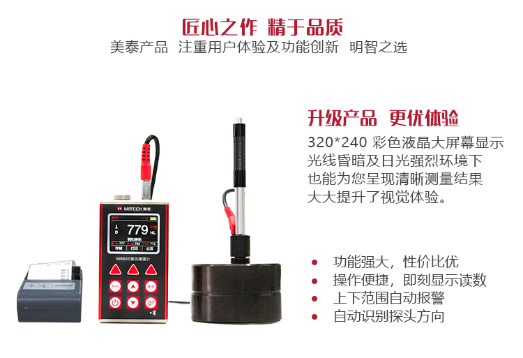 MH660便攜式里氏硬度計是美泰公司新推出的升級產(chǎn)品,它更加注重用戶體驗及功能創(chuàng)新。采用320×240彩色液晶顯示屏,光線昏暗及日光強烈環(huán)境下也能為您呈現(xiàn)清晰測量結(jié)果,大大提升了視覺體驗;密封的金屬外殼精巧設(shè)計,體積更小、品質(zhì)更優(yōu),專為抵御惡劣現(xiàn)場環(huán)境中的油污、粉塵而設(shè)計;獨創(chuàng)的多點校準(zhǔn)功能,可對轉(zhuǎn)換曲線進行多點調(diào)校,減小測量誤差;測量中儀器可自動識別測量方向,滿足高效采集多角度材料硬度的精準(zhǔn)檢測需求,支持多種硬度制氏間的自由轉(zhuǎn)換;低功耗設(shè)計由兩節(jié)AA五號電池供電,可實現(xiàn)藍(lán)牙通訊,支持多語言版本切換。被廣泛地應(yīng)用于金屬加工制造業(yè)、特種設(shè)備或永久性組件的在役失效分析、商檢等領(lǐng)域。特別適宜對大型不可拆卸部件的現(xiàn)場硬度測試。是提高生產(chǎn)合格率、節(jié)約成本必備的專業(yè)精密儀器。