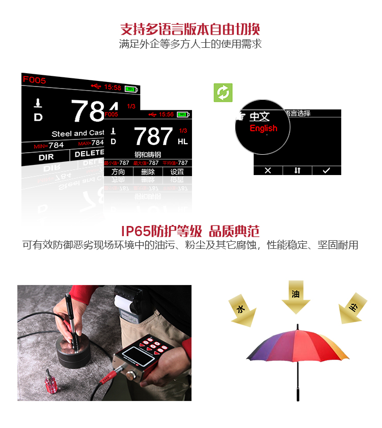 中英文自由切換,菜單式操作,使用簡單、方便。