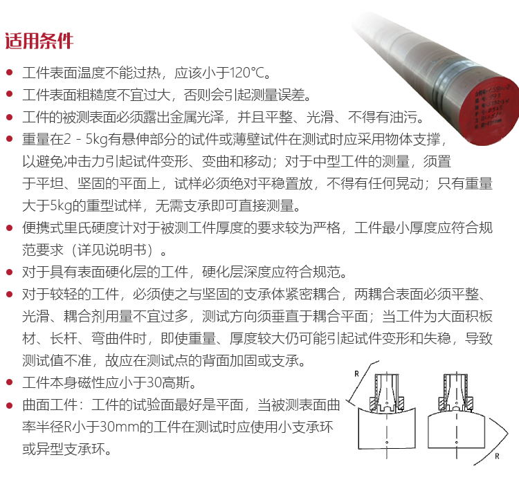 只有重大于5kg的重型試樣,無需支承即可直接測量。便攜式里氏硬度計對于被測工件 厚度的要求較為嚴(yán)格,工件最小厚