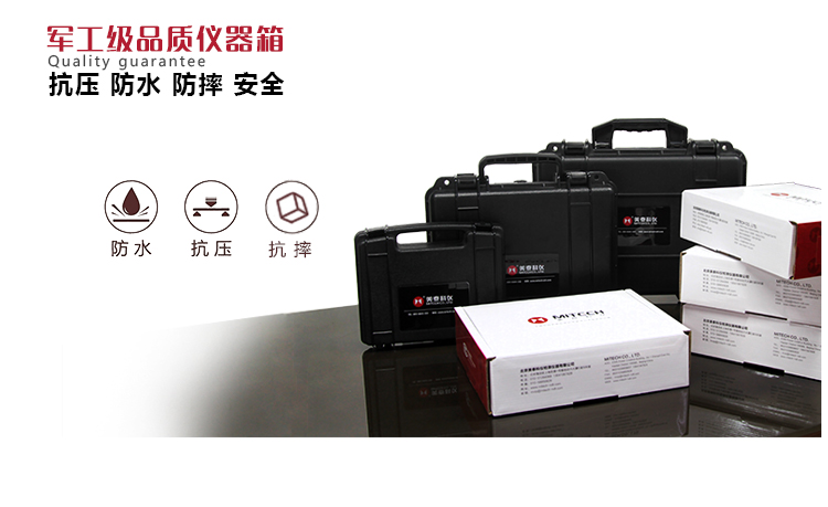 美泰系列便攜式里氏硬度計儀器箱,長:35.5cm;寬:19cm;高:11cm;重:1.5kg。采用ABS工程塑料精制而成,密封防水、抗摔防震,具有耐熱性、耐低溫等優(yōu)良性能,可有效防御惡劣環(huán)境中的油污、粉塵及各種腐蝕,箱體尺寸符合航空、列車攜帶標(biāo)準(zhǔn)(可放于座位底下和行李架上),安全、可靠、穩(wěn)定。 |