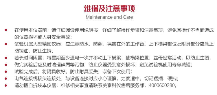 試驗(yàn)機(jī)屬大型精密儀器,應(yīng)注意防水、防潮。裸露在外的工作臺(tái)、上下橫梁部位及附具部分應(yīng)涂上防銹油,防止生銹;
