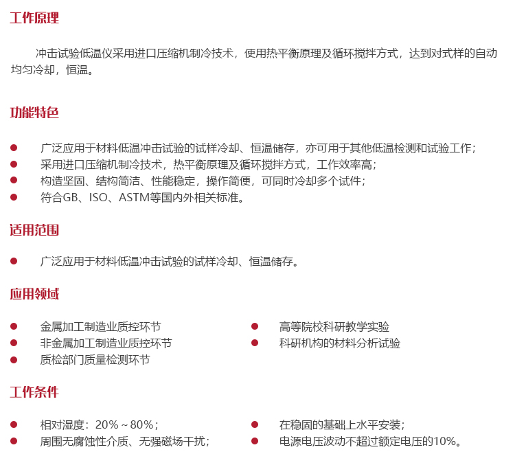 廣泛應(yīng)用于材料低溫沖擊試驗(yàn)的試樣冷卻、恒溫儲(chǔ)存,亦可用于其他低溫檢測(cè)和試驗(yàn)工作;