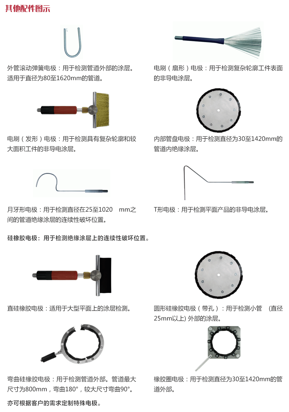 ?可選配用于檢測(cè)管道內(nèi)外壁表面涂層的專用電極。