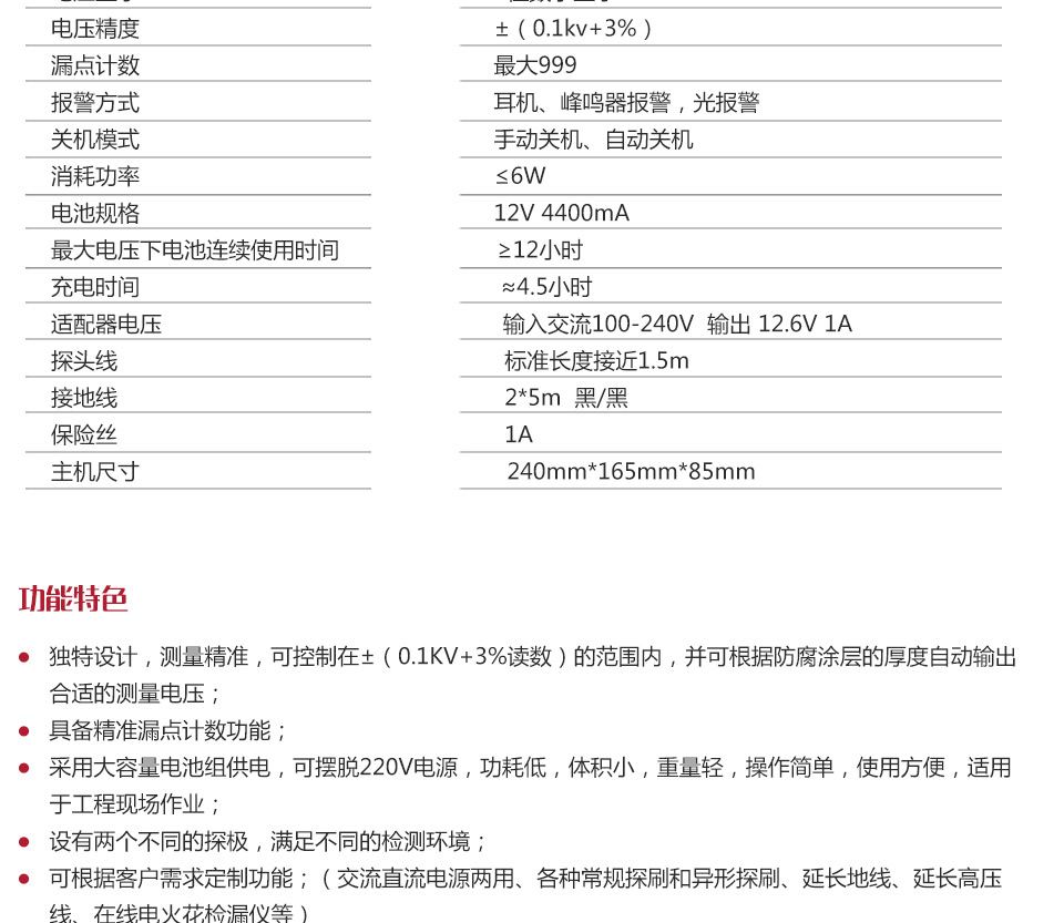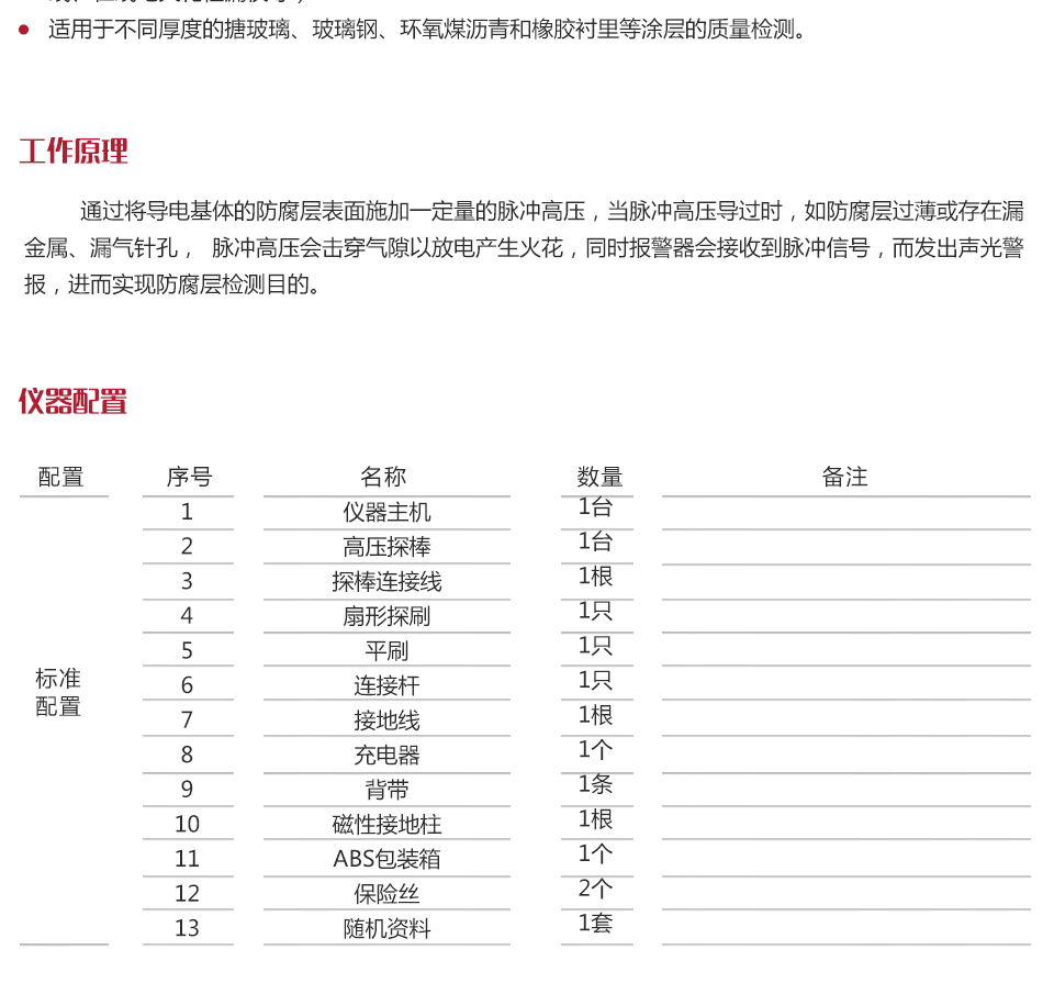 ?適用于不同厚度的搪玻璃、玻璃鋼、環(huán)氧煤瀝青和橡膠襯里等涂層的質(zhì)量檢測(cè)。
