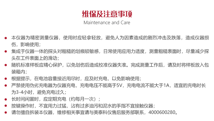 美泰便攜式粗糙度儀MR100屬精密檢測(cè)儀器,使用中應(yīng)特別注意如下事項(xiàng):
