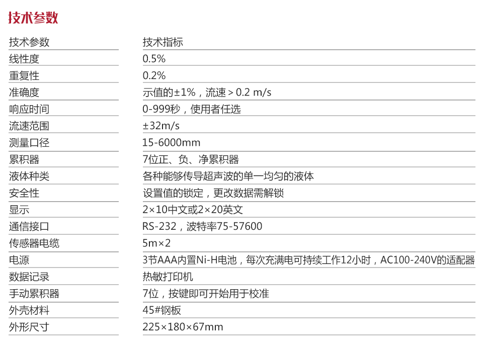 準確度 | 示值的±1%,流速>0.2 m/s |