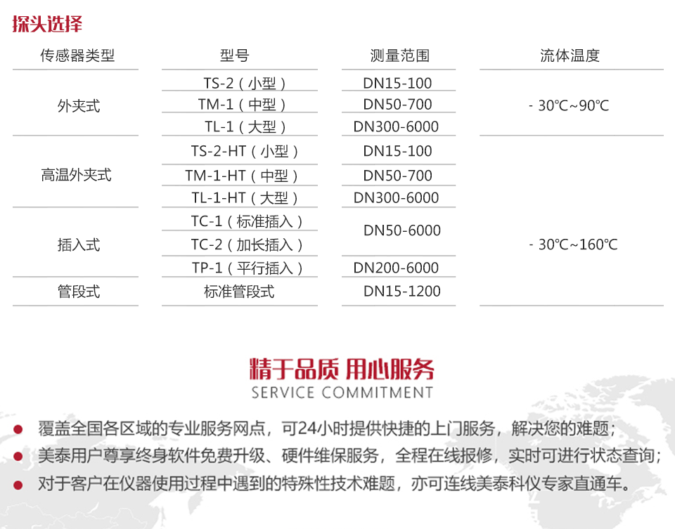 傳感器溫度:外夾式:﹣30℃~90℃;高溫外夾式、插入式、管段式:﹣30℃~160℃。