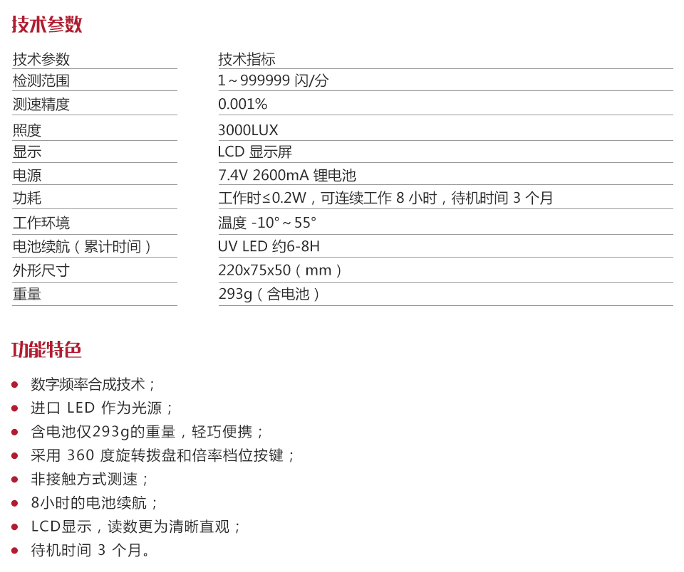 檢測范圍 | 1~999999 閃/分 |