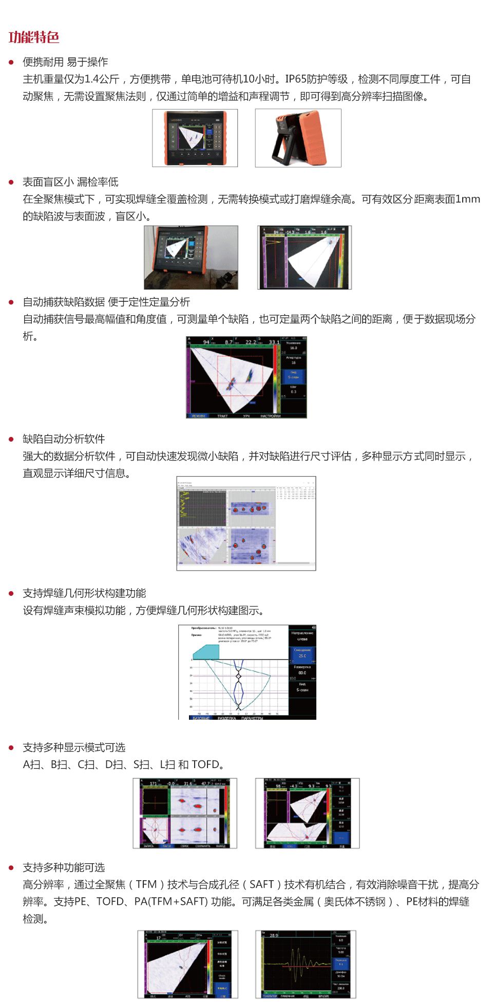?用于管道焊縫、PE管、小徑管、微小缺分析、近表面缺陷檢測;