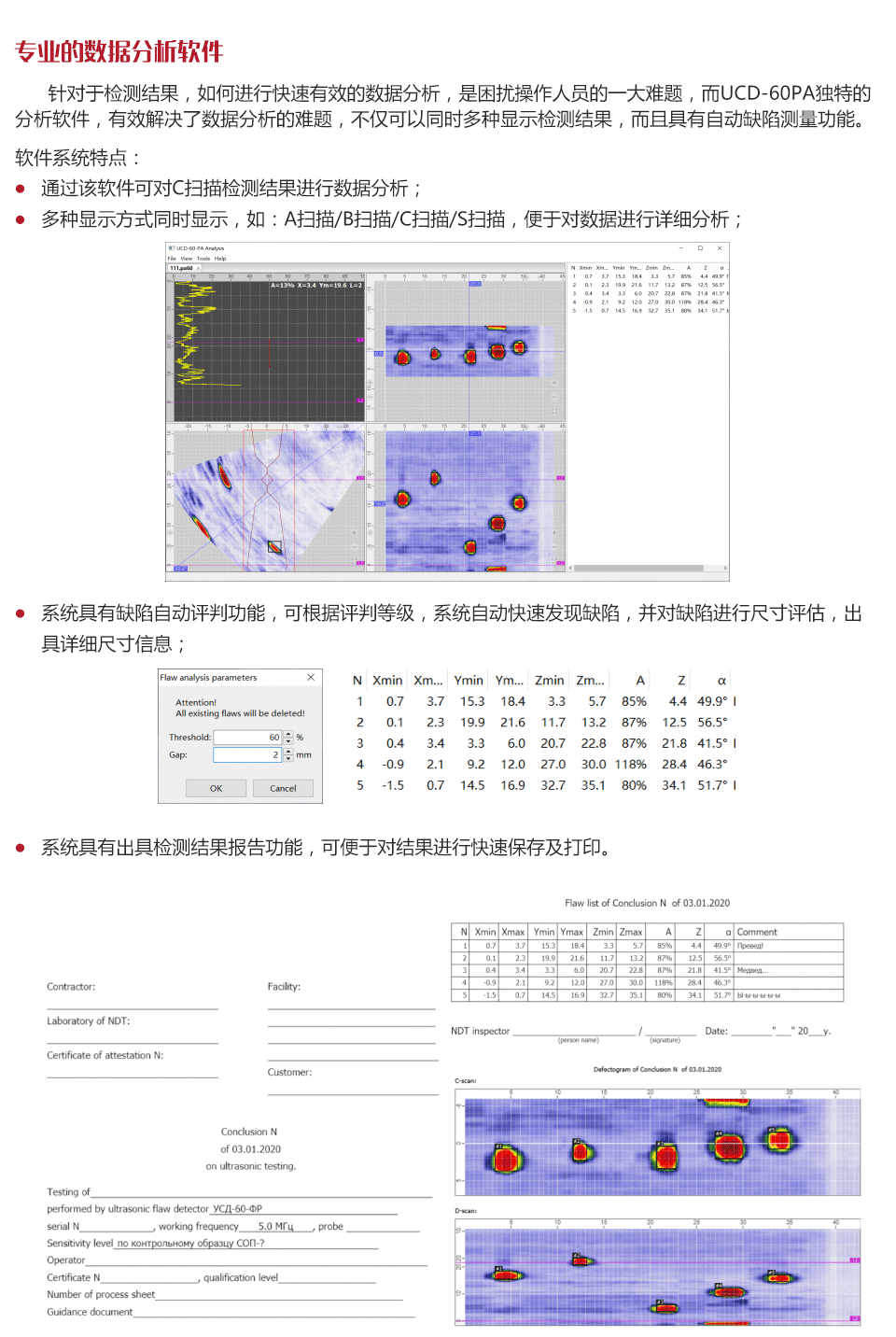 ? 缺陷定性定量分析:自動捕獲信號最高幅值和角度值,可測量單個缺陷,也可測量兩個缺陷之間的距離,更加便于數據現場分析;
