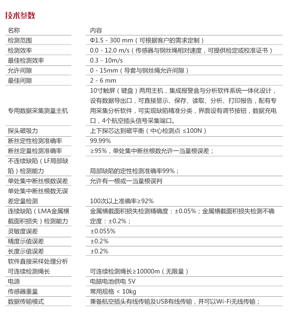 軟件直接采樣處理分析,可連續(xù)檢測繩長 | 可連續(xù)檢測繩長≥10000m(無限量) |