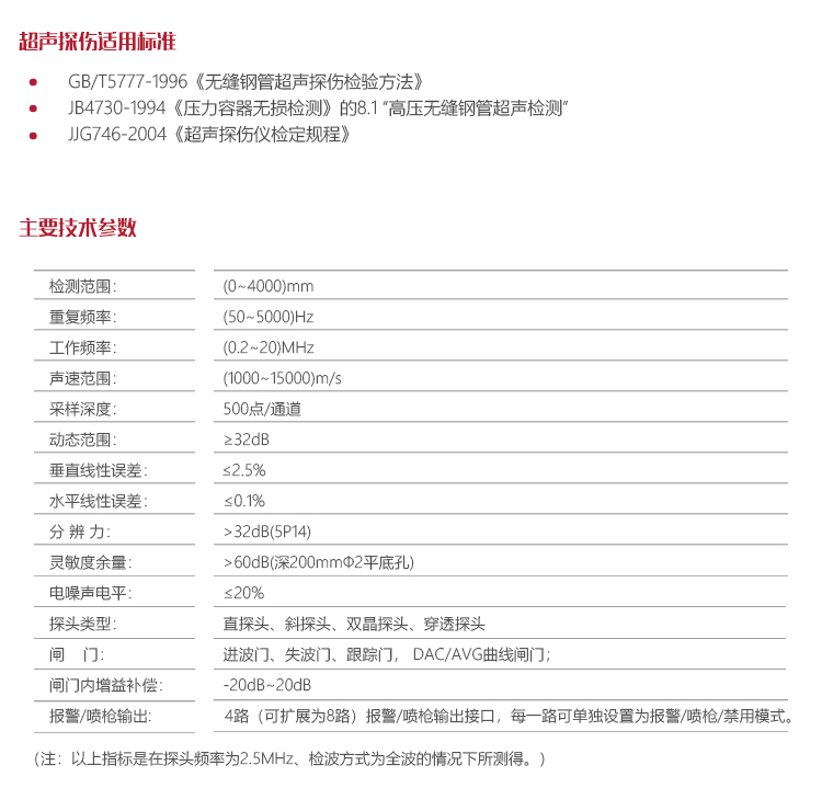 靈敏度余量: | >60dB(深200mmФ2平底孔) |