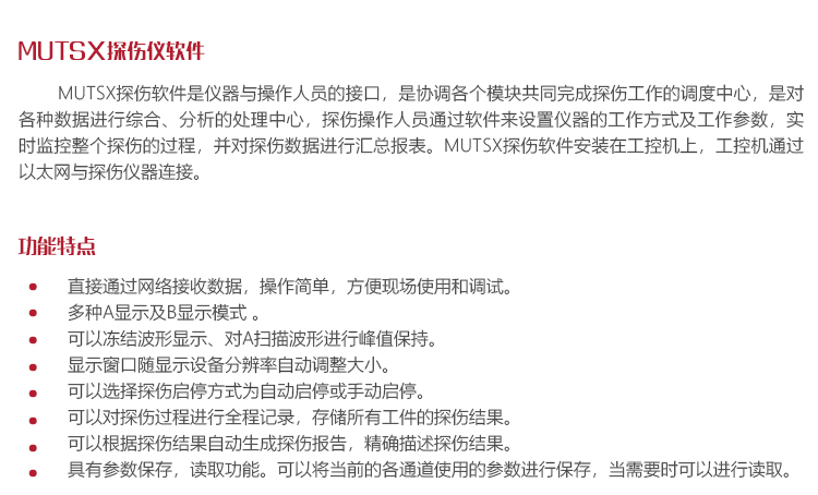 l 支持多種探頭,包括直探頭、斜探頭、雙晶探頭等,發(fā)射脈沖幅度600V, 脈沖寬度可調(diào)節(jié)。