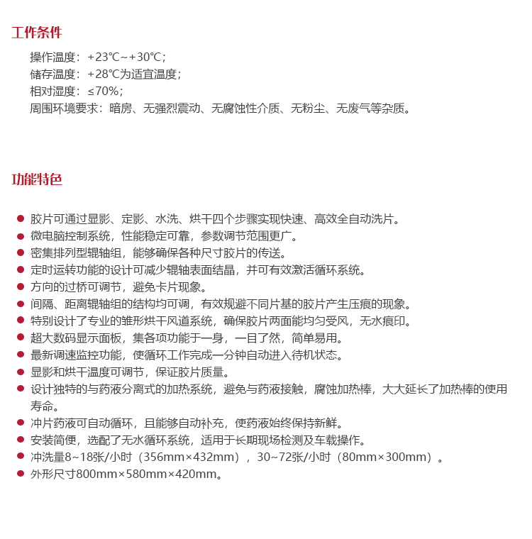 洗 片 量 | 8~18張/小時(shí)(356×432mm);30~72張/小時(shí)(80×300mm) |