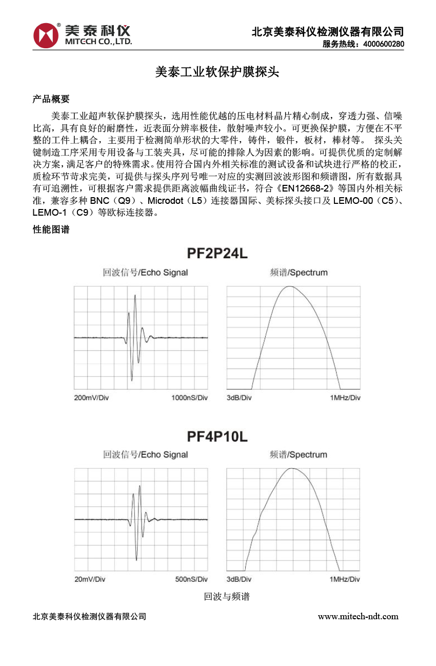 美泰工業(yè)超聲軟保護(hù)膜探頭,選用性能優(yōu)越的壓電材料晶片精心制成,穿透力強(qiáng)、信噪比高,具有良好的耐磨性,近表面分辨率極佳,散射噪聲較小??筛鼡Q保護(hù)膜,方便在不平整的工件上耦合,主要用于檢測(cè)簡(jiǎn)單形狀的大零件,鑄件,鍛件,板材,棒材等。 探頭關(guān)鍵制造工序采用專用設(shè)備與工裝夾具,盡可能的排除人為因素的影響??商峁﹥?yōu)質(zhì)的定制解決方案,滿足客戶的特殊需求。使用符合國(guó)內(nèi)外相關(guān)標(biāo)準(zhǔn)的測(cè)試設(shè)備和試塊進(jìn)行嚴(yán)格的校正,質(zhì)檢環(huán)節(jié)苛求完美,可提供與探頭序列號(hào)唯一對(duì)應(yīng)的實(shí)測(cè)回波波形圖和頻譜圖,所有數(shù)據(jù)具有可追溯性,可根據(jù)客戶需求提供距離波幅曲線證書,符合《EN12668-2》等國(guó)內(nèi)外相關(guān)標(biāo)準(zhǔn),兼容多種LEMO-00(C5)、LEMO-1(C9)連接器。