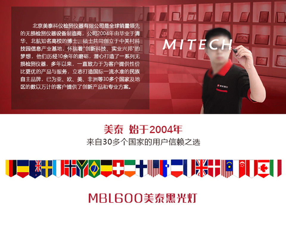 美泰LED紫外線燈(黑光燈)MBL600,采用原裝進(jìn)口光源UVLED,可達(dá)到超高照度,極低功耗,光源平均壽命可達(dá)30000H。其體積小重量輕,易于攜帶,采用鋁合金外殼,堅固耐用,是熒光磁粉探傷、滲透探傷、特種氣體、油氣管道等領(lǐng)域必備的即開即用型手電式照明設(shè)備。