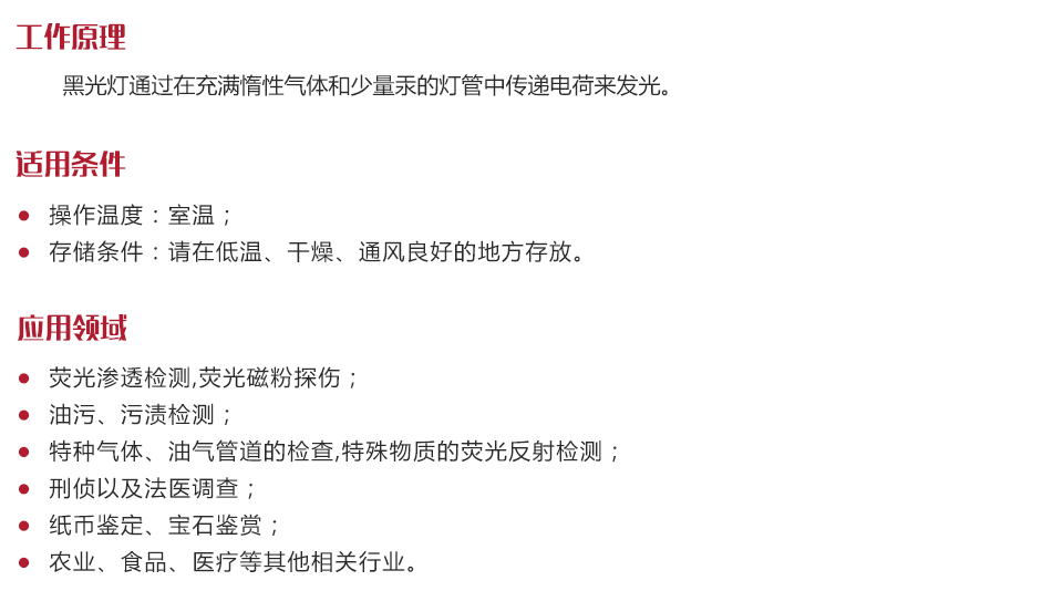 黑光波長 | 室溫25℃ UVA(360-370nm) |