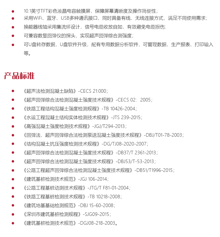 l 可兼容數(shù)顯回彈儀的探頭,實現(xiàn)超聲回彈綜合測強度;
