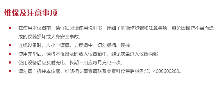 請勿擅自拆裝本儀器,維修相關(guān)事宜請聯(lián)系美泰科儀售后服務(wù)部,4000600280。