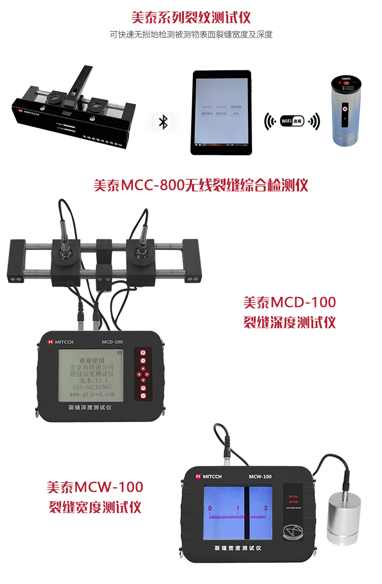 美泰MCD-100裂縫深度測試儀依據(jù)聲波繞射原理,可快速無損檢測混凝土等表面裂縫深度。其測量速度快、測量精度高、性能穩(wěn)定可靠,適用于橋梁、隧道、塔、建筑物、混凝土物件、路面、非金屬構(gòu)件表面等裂縫深度檢測,是保障生命財產(chǎn)安全必備的專業(yè)精密檢測儀器。
