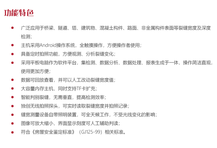 l 獨創(chuàng)無線拍照探頭,可實時讀取裂縫寬度并拍照記錄;
